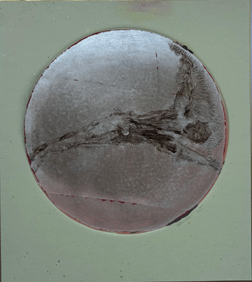 monoprint on Japanese board with silver leaf